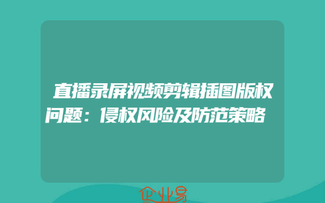 - 直播录屏视频剪辑插图版权问题:侵权风险及防范策略