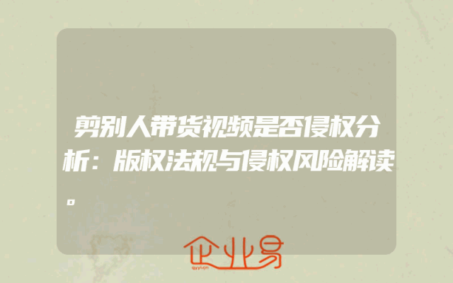 - 剪别人带货视频是否侵权分析:版权法规与侵权风险解读。