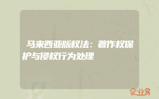 - 马来西亚版权法:著作权保护与侵权行为处理