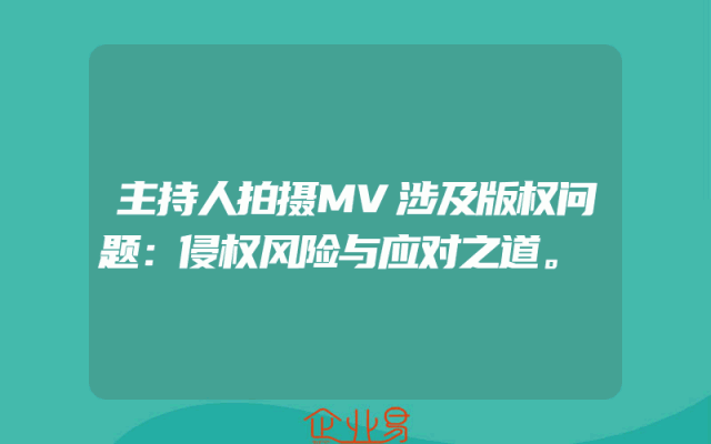 - 主持人拍摄MV涉及版权问题:侵权风险与应对之道。