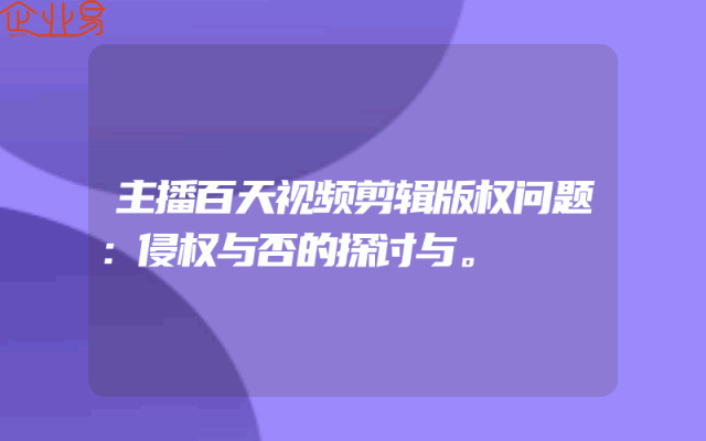 - 主播百天视频剪辑版权问题:侵权与否的探讨与。