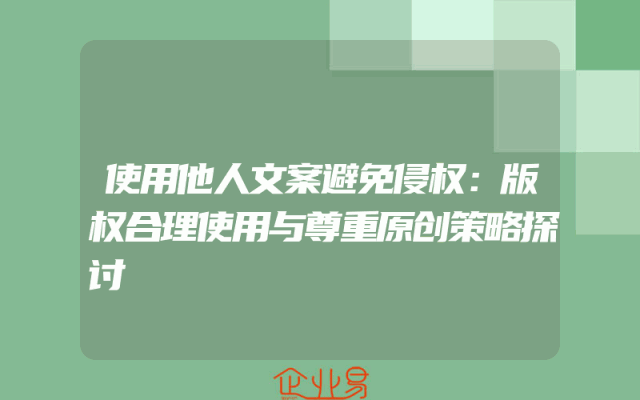 - 使用他人文案避免侵权:版权合理使用与尊重原创策略探讨
