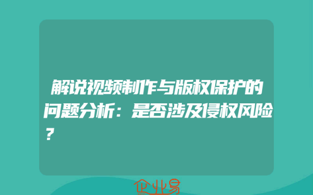 - 解说视频制作与版权保护的问题分析:是否涉及侵权风险?
