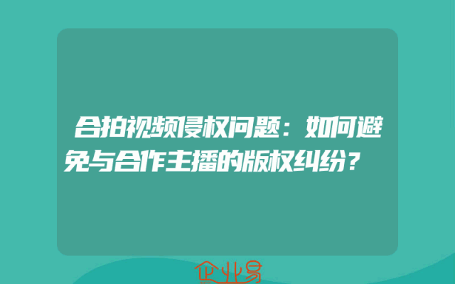 - 合拍视频侵权问题:如何避免与合作主播的版权纠纷?
