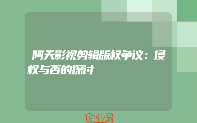 - 阿天影视剪辑版权争议:侵权与否的探讨