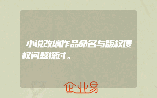 - 小说改编作品命名与版权侵权问题探讨一、作品命名的重要性在知识产权领域,作品的命名常常被视为一种标识和标签,对于改编作品而言更是如此。合适的命名不仅能吸引读者眼球,还可能引发大众对原著的兴趣,进而带动原著的销售。因此,在改编作品时,对作品的命
