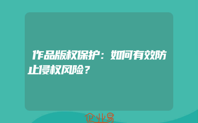 - 作品版权保护:如何有效防止侵权风险?随着数字技术的快速发展,网络成为信息传播的主要途径,作品的版权保护问题愈发受到关注。如何有效防止侵权风险,维护创作者的合法权益,成为摆在我们面前的重要课题。以下从不同角度,探讨这一问题。一、增强版权意识提