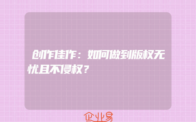 - 创作佳作:如何做到版权无忧且不侵权?