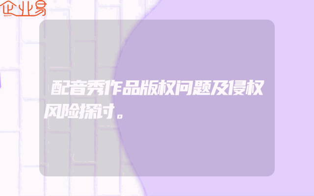 - 配音秀作品版权问题及侵权风险探讨一、配音秀作品的版权归属与权益保障随着网络技术的发展,配音秀作品日益普及,但这类作品的版权问题逐渐浮现。首先,我们需要明确配音秀作品的版权归属。原创的配音秀作品,其版权应归属于创作者本人,包括音频、视频及文字