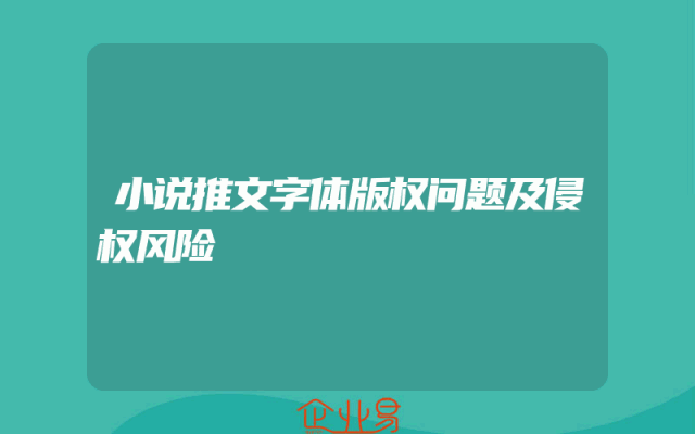 - 小说推文字体版权问题及侵权风险解析一、字体版权的概述随着文化产业的快速发展,文字版权问题日益受到重视。字体作为文字的重要表现形式,其版权问题也逐渐凸显出来。在小说推广过程中,对于字体的使用必须谨慎,避免陷入版权纠纷。二、版权法中字体的定位在