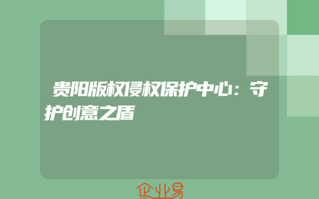 - 贵阳版权侵权保护中心:守护创意之盾