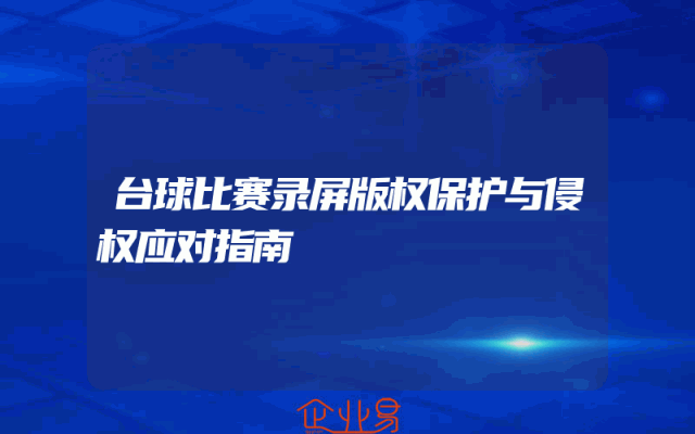 - 台球比赛录屏版权保护与侵权应对指南一、台球比赛录屏的版权问题随着网络技术的发展,台球比赛的观看方式愈发多样化,其中录屏成为了一种常见的传播方式。然而,这种传播方式也带来了版权问题。根据相关法律法规,台球比赛的录屏属于著作权法保护范畴,赛事组