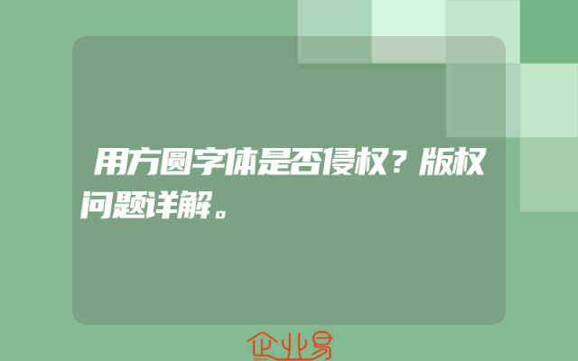 - 方圆字体是否侵权?版权问题详解一、字体与版权概述在当今数字化时代,字体作为重要的视觉元素,广泛应用于各种媒介。字体的版权问题也逐渐受到人们的关注。那么,使用方圆字体是否侵权?这需要根据具体情况来判断。本文将详细解析字体版权问题,帮助大家了解