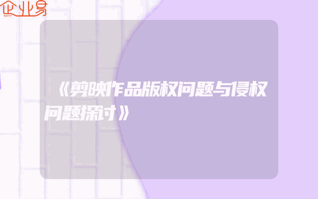 - 《剪映作品版权问题与侵权问题探讨》