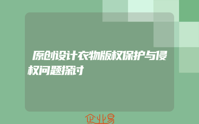 - 原创设计衣物版权保护与侵权问题探讨