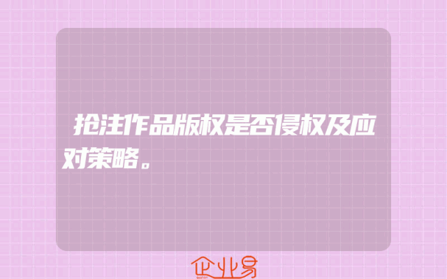 - 抢注作品版权是否侵权及应对策略。