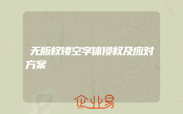 - 无版权镂空字体侵权解析及应对方案一、无版权镂空字体的定义及特点无版权镂空字体,顾名思义,指的是一种不涉及到版权问题的特殊字体设计。其特点是是在保持字体美观的同时,不侵犯他人的知识产权。这种字体通常用于商业设计、广告宣传等领域。二、无版权镂空