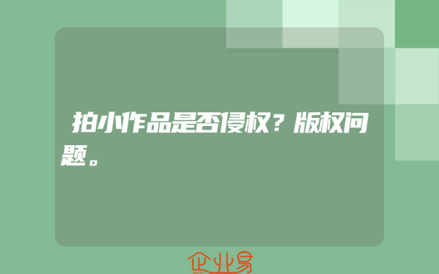 - 拍小作品是否侵权?版权问题解析一、引言在当今社交媒体和网络盛行的时代,越来越多的人热衷于创作并分享自己的小作品,如短视频、摄影、绘画等。然而,随着创作的繁荣,版权问题也逐渐浮出水面,引发广泛关注。那么,拍小作品是否侵权?这个问题需要