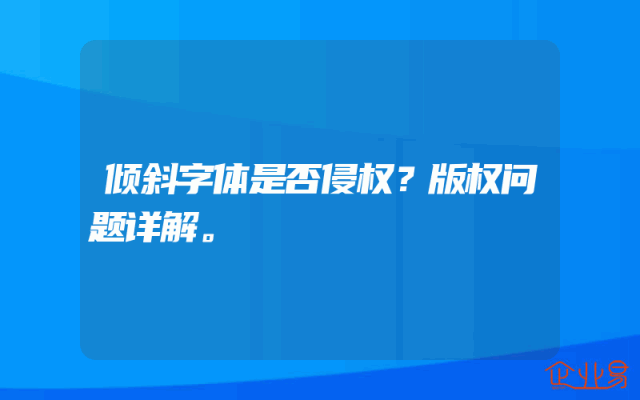 - 倾斜字体是否侵权?版权问题详解一、倾斜字体的定义与特点倾斜字体是一种字体样式,通过改变字体的形态和线条,使其呈现出一种独特的视觉效果。在设计中,倾斜字体往往用于表达特定的情感或氛围,如动态、活力等。这种字体的特点是既具有一定的艺术性,又具备