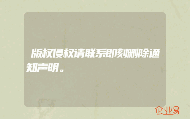 - 版权侵权请联系即刻删除通知声明。
