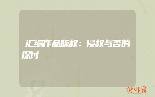 - 汇编作品版权:侵权与否的探讨
