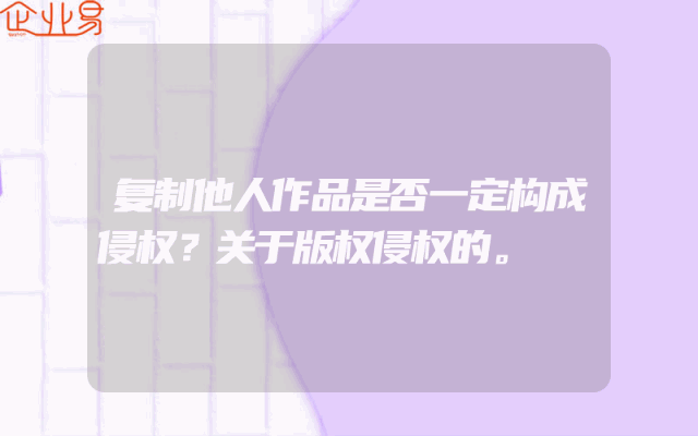 - 复制他人作品是否一定构成侵权?关于版权侵权的。