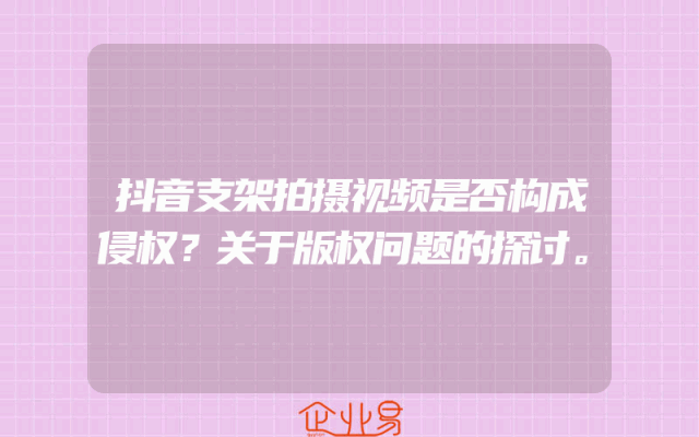 - 抖音支架拍摄视频是否构成侵权?关于版权问题的探讨。