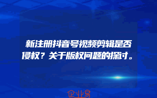 - 新注册抖音号视频剪辑是否侵权?关于版权问题的探讨一、引言随着互联网的普及和社交媒体的发展,抖音作为一款流行的短视频平台,吸引了大量用户。新注册用户在创作和分享视频时,常常面临关于版权问题的困惑。本文将探讨新注册抖音号进行视频剪辑时是