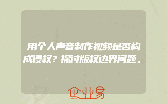 - 用个人声音制作视频是否构成侵权?探讨版权边界问题。