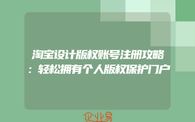 - 淘宝设计版权账号注册攻略:轻松拥有个人版权保护门户一、淘宝设计版权账号的重要性随着互联网的快速发展,设计版权问题越来越受到人们的关注。在这个创意辈出的时代,保护个人设计作品的知识产权显得尤为重要。注册淘宝设计版权账号,可以为你提供一个权威的