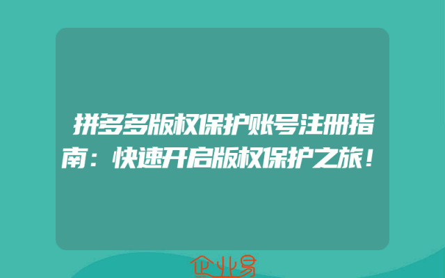 - 拼多多版权保护账号注册指南:快速开启版权保护之旅!