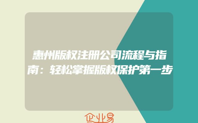 - 惠州版权注册公司流程与指南:轻松掌握版权保护第一步