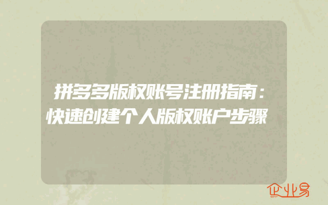 - 拼多多版权账号注册指南:快速创建个人版权账户步骤