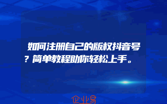 - 如何注册自己的版权抖音号?简单教程助你轻松上手一、了解版权抖音号的重要性在数字化时代,社交媒体平台如抖音已成为大众获取信息、互动交流的重要渠道。注册一个属于自己的版权抖音号,不仅能让你在抖音上分享创意、展示才华,还能有效保护你的原创内容,防