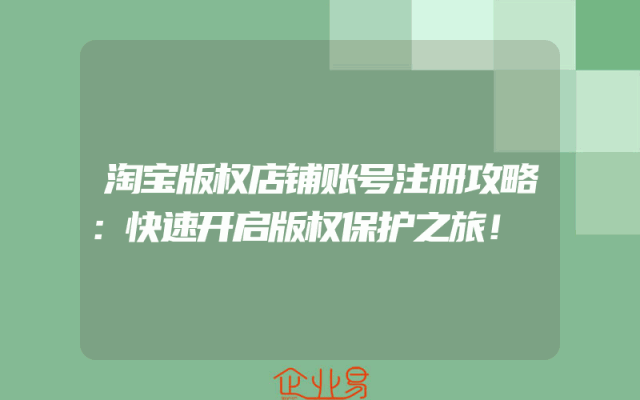 - 淘宝版权店铺账号注册攻略:快速开启版权保护之旅!