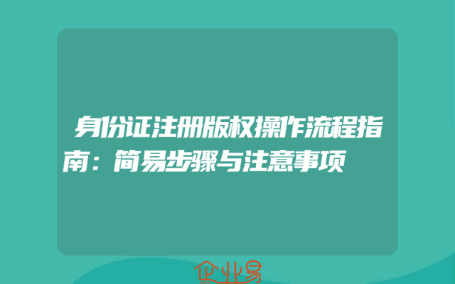 - 身份证注册版权操作流程指南:简易步骤与注意事项