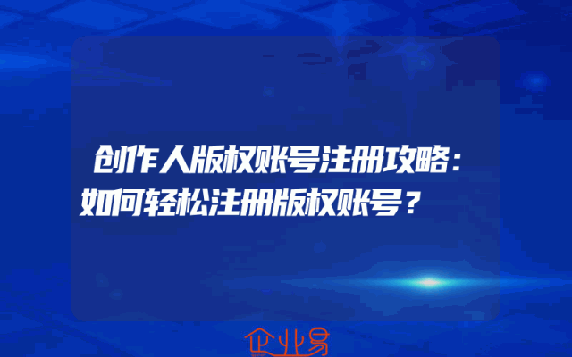 - 创作人版权账号注册攻略:如何轻松注册版权账号?