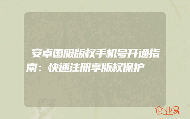 - 安卓国服版权手机号开通指南:快速注册享版权保护一、了解版权保护与手机号注册的重要性随着移动互联网的迅猛发展,版权保护问题愈发重要。作为知识产权的重要组成部分,版权直接关系到创作者的权益以及整个创意产业的繁荣发展。在这个时代,拥有原创作品并不
