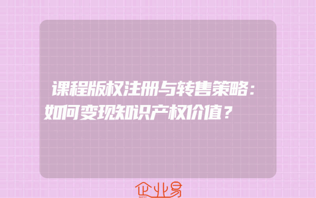 - 课程版权注册与转售策略:如何变现知识产权价值?