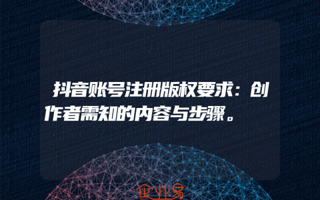 - 抖音账号注册版权要求详解:创作者需知的内容与步骤一、抖音平台版权注册的重要性随着抖音等短视频平台的兴起,越来越多的创作者选择在抖音上发布自己的作品。为了保护原创内容,维护创作者的权益,了解抖音账