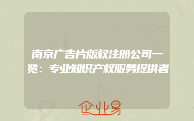 - 南京广告片版权注册公司一览:专业知识产权服务提供者