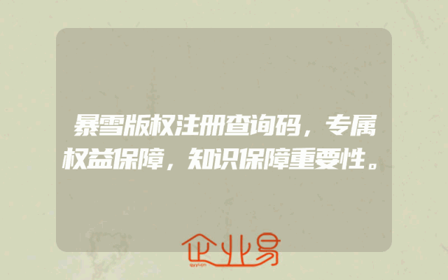 - 暴雪版权注册查询码,专属权益保障,知识保障重要性。