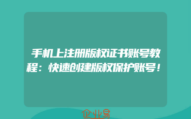 - 手机上注册版权证书账号教程:快速创建版权保护账号!