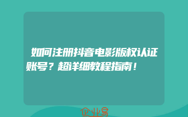 - 如何注册抖音电影版权认证账号?超详细教程指南!
