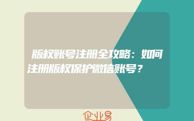 - 版权账号注册全攻略:如何注册版权保护微信账号?一、了解版权保护的重要性在数字化时代,知识产权保护显得尤为重要。尤其是随着微信这一社交平台的普及,我们有必要了解如何为自己的创意、作品等注册版权保护微信账号。版权保护不仅能维护创作者的合法权益,