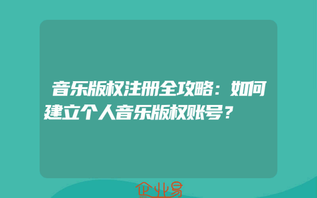 - 音乐版权注册全攻略:如何建立个人音乐版权账号?