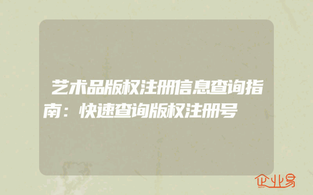 - 艺术品版权注册信息查询指南:快速查询版权注册号