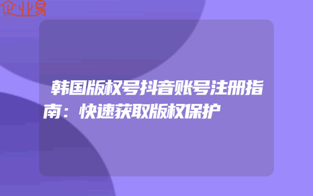 - 韩国版权号抖音账号注册指南:快速获取版权保护
