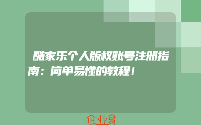 - 酷家乐个人版权账号注册指南:简单易懂的教程!