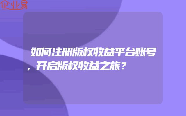 - 如何注册版权收益平台账号,开启版权收益之旅?一、了解版权收益平台在开始注册版权收益平台账号之前,首先要对平台有一个基本的了解。版权收益平台是专门帮助版权所有者管理和保护其知识产权,并通过版权许可、转让或许可等方式获取收益的平台。这样的平台通